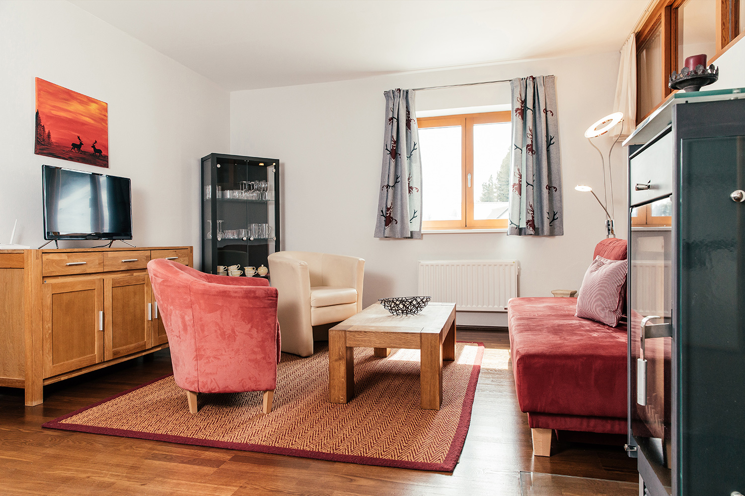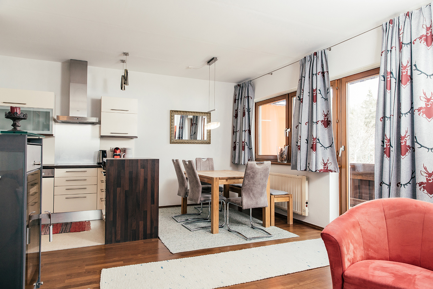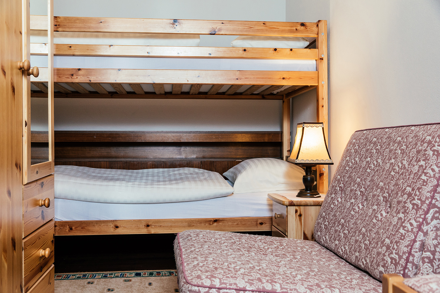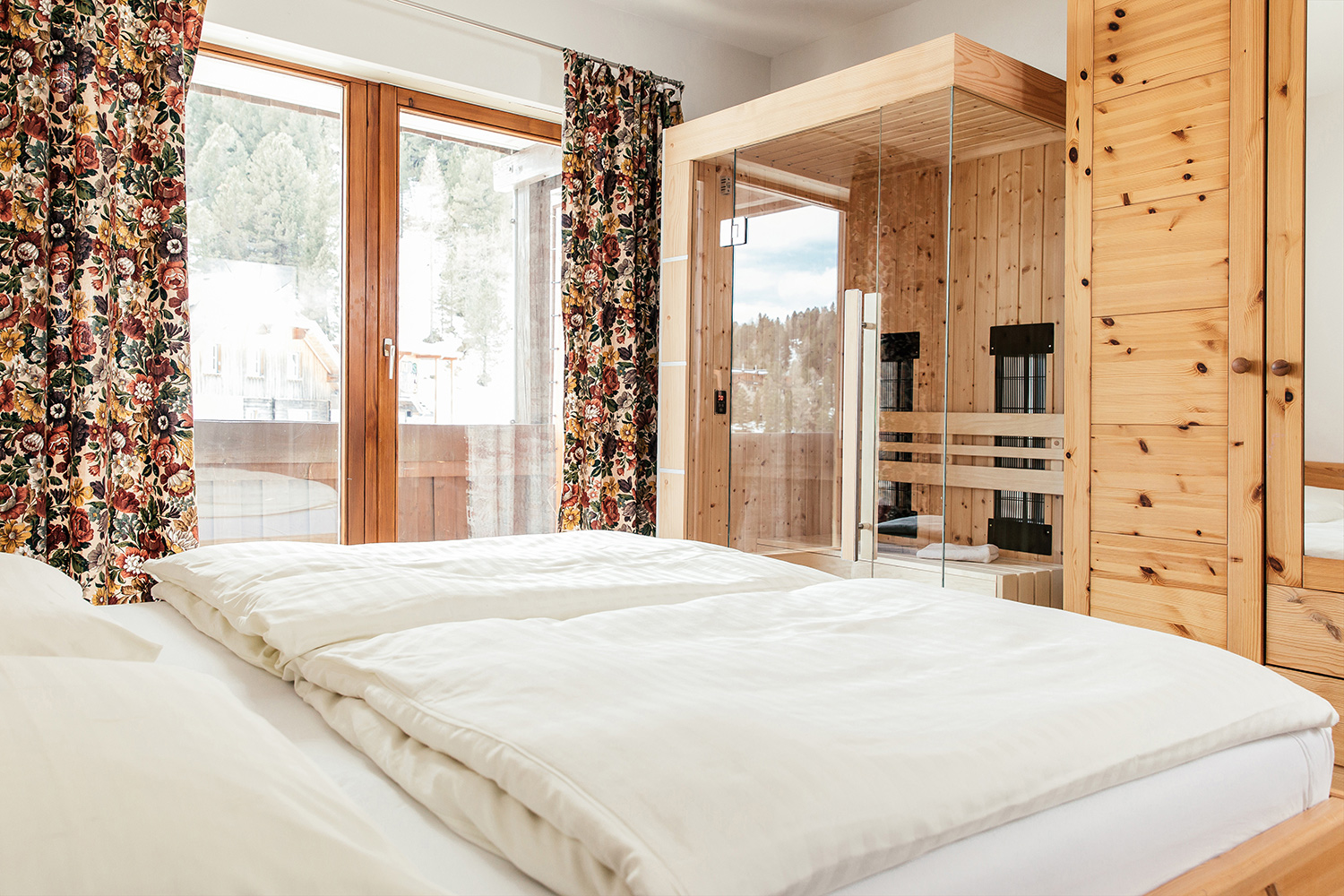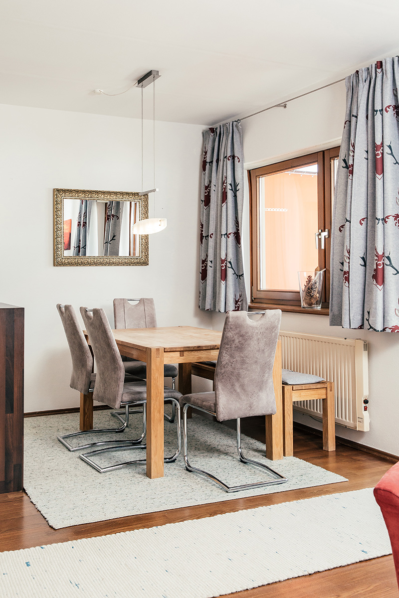 The 73 square meter apartment offers plenty of space for memorable moments and lots of room for individual experiences - whether skiing vacation with the whole family, hiking trip with friends or bike adventures for the whole family. A bedroom with double bed, a room with two beds and a living room with double couch ensure quiet nights, the extra relaxation is guaranteed by the private infrared sauna. Bathroom and toilet and a fully equipped kitchen make the happiness on the mountain perfect.